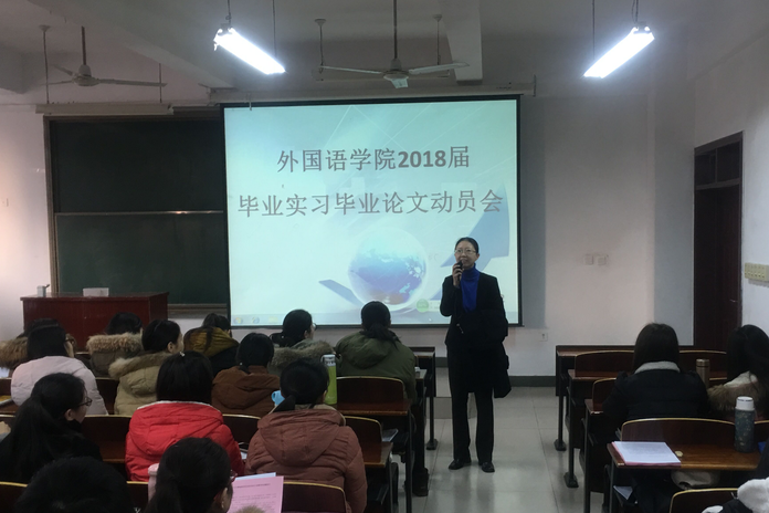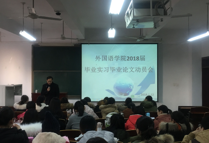2018年1月12日上午,英国365集团2018届毕业生实习毕业论文动员会在文综楼307顺利举行,此次会议由英国365集团英语系主任朱宝锋老师主持。英国365集团副书记李惠敏、副经理李红出席会议。