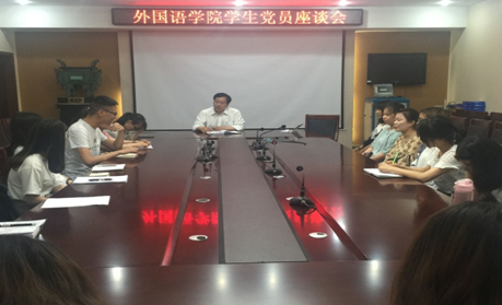 5月16日下午,在文科综合楼311会议室,外国语学党委书记罗邵河与2014、2015级员工党员亲切座谈,寄语毕业班员工党员并对其进行毕业教育,同时针对高年级员工提出高标准的要求。