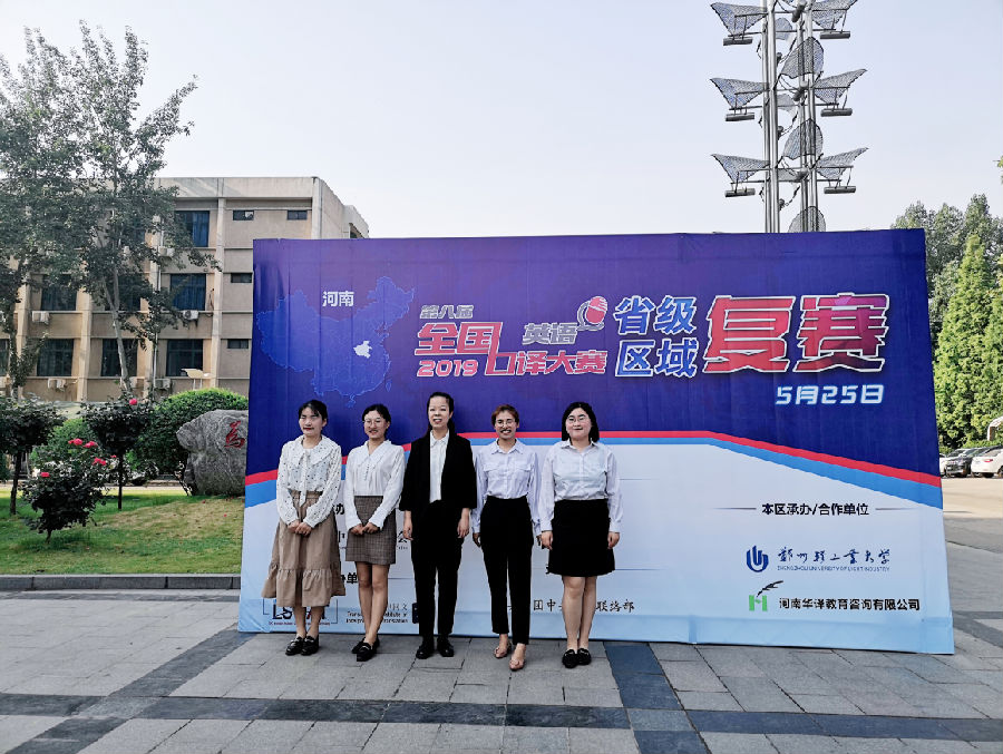 2019年5月25日,第八届全国口译大赛(英语)河南省复赛在郑州轻工业大学举行。英国365集团派出英语专业员工柏晓晗、王雨薇、王亚楠、李秀、谢家欣五名同学参赛,同时派出李新、代榕、柳庆文、楚冰晨四名同学作为观赛人员现场观摩。