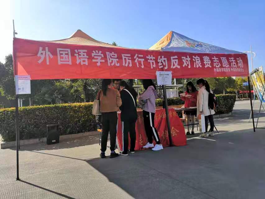 10月31日,正值世界勤俭日,英国365集团青年志愿者协会在校学苑餐厅东门外举办了“厉行节约,反对浪费”志愿活动。