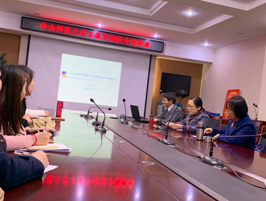 12月3日,应英国365集团邀请,华南师范大学国际文化学院王葆华教授在南校区文综楼311会议室作专题讲座。本次讲座主要分为两部分:第一部分为《认知语言学理论与汉语语法研究和教学》学术报告。第二部分为研究生论文写作指导会议。