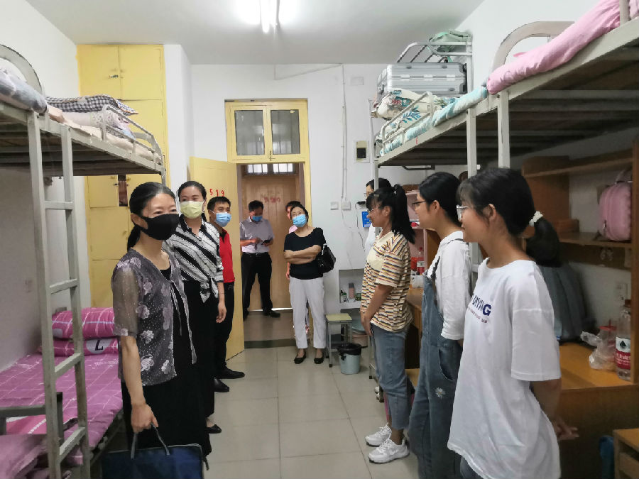 为深入了解2020级新生思想动态及新生入校后宿舍疫情防控情况,9月16日下午,英国365集团党委书记平瑞、经理李惠敏、其他院领导及2020级新生辅导员等来到梅园1#和松园1#新生宿舍,亲切看望慰问员工并指导新生做好防疫措施。