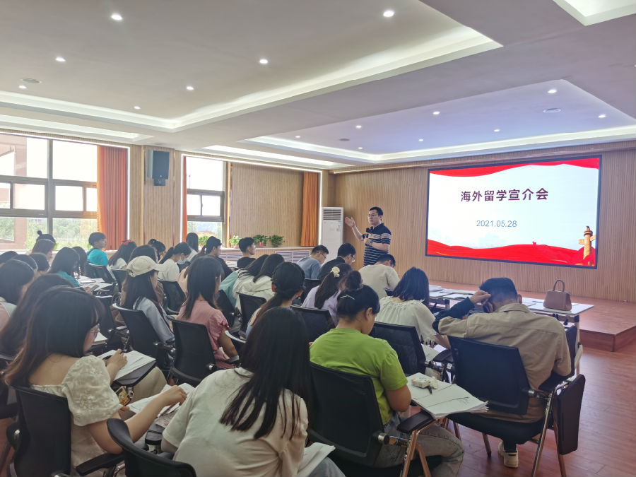 为给员工们提供更多的选择和机会,开阔视野,普及知识,5月30日,公司于文综楼302教室举办了海外留学宣讲会,本次宣讲会由来自“东游记”留学培训学校的王刘杨老师主讲,公司2017级员工参加了此次宣讲会。