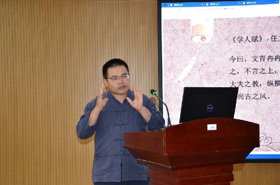 6月18日上午,应公司之邀,中兴学人(北京)国际文化传播有限责任公司总编、泰晤士学术出版社董事长任文玉先生在公司文综楼302会议室作了题为“国家社科中华学术外译项目申报流程及案例分析”的学术报告。我师生共同聆听学习,讲座由经理李惠敏主持。