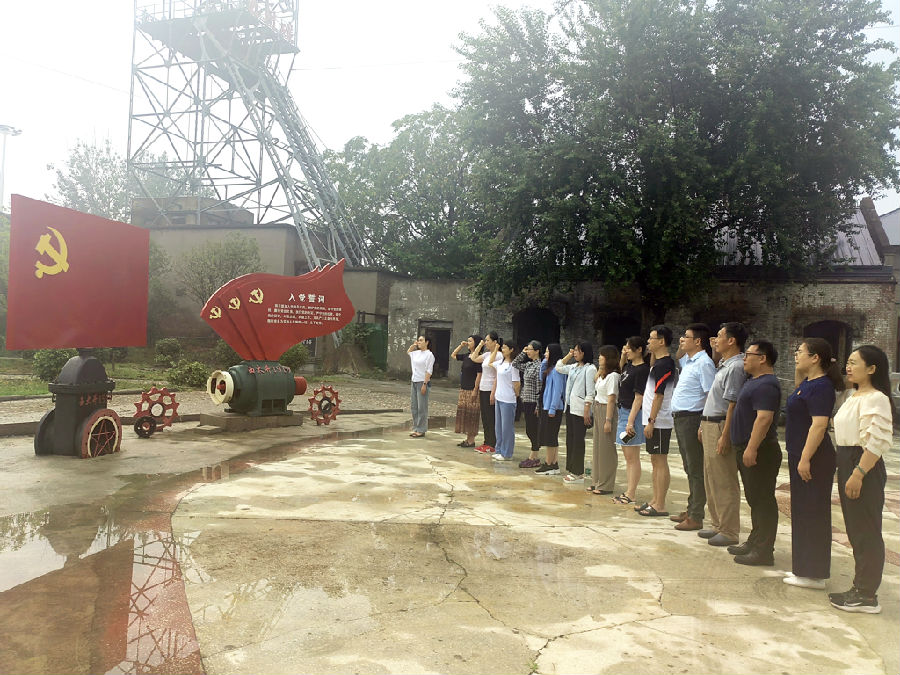 跟随着讲解员的解说,党员教师们先后实地参观了中共焦作矿区委员会旧址、焦作煤矿工人大罢工旧址、王封档案馆、拥有百年历史的“西大井”井台、原英福公司电厂机房、英雄广场等纪念地,观看了情景剧《百年王封的邀请》《矿工夜校》《井口聚集》,深切感受了中国共产党带领全国人民取得民族独立、新民主主义革命和建立社会主义新中国的光荣历史。最后,全体党员面对鲜红的党旗重温入党誓词,再次庄严宣誓,进一步树立对党矢志不渝的坚定信念。