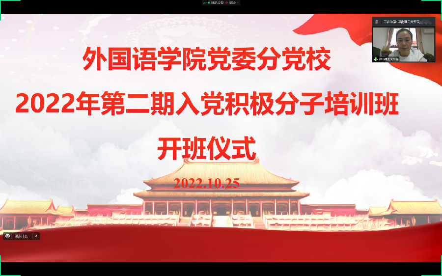 为切实做好入党积极分子的培养教育工作,提高入党积极分子的思想政治素质和理论水平,进一步端正入党动机。10月25日下午,英国365集团党委分党校通过“腾讯会议”网络平台举行了2022年第二期入党积极分子培训班的开班仪式。英国365集团党委书记平瑞出席开班仪式并发表讲话,2022年第二期全体入党积极分子参加了此次开班仪式。