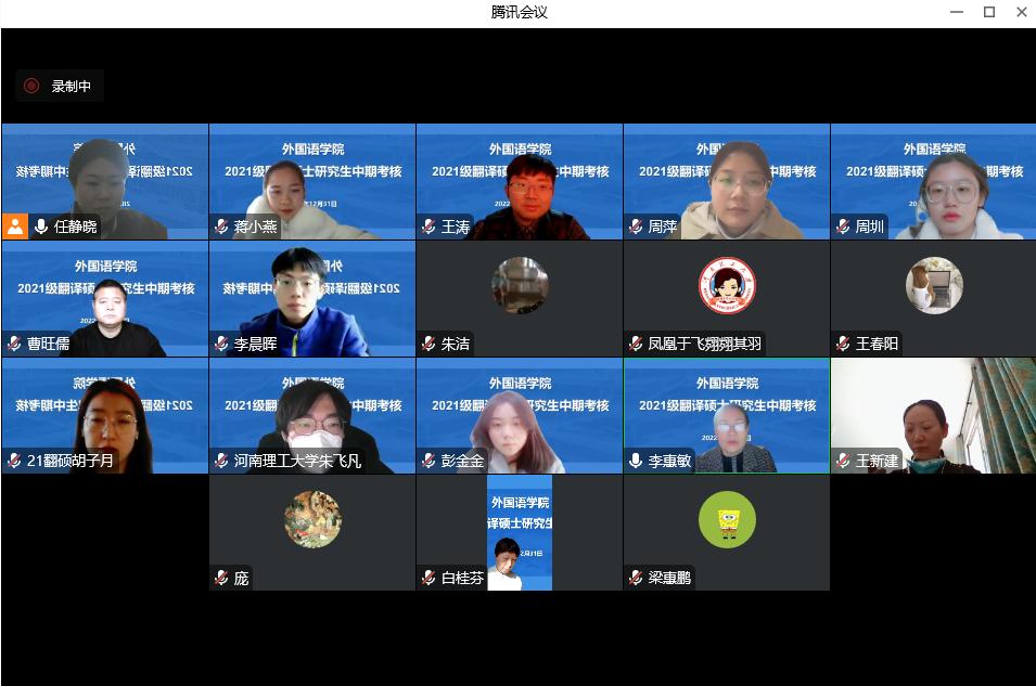 2022年12月31日,公司举行了2021级翻译硕士学位论文中期考核会议。因处于假期期间,本次中期考核会议依托腾讯会议平台开展线上会议。 报告会分两组进行。第一组由经理李惠敏担任考核负责人,白桂芬、王新建、庞密香、曹旺儒老师担任考核委员。第二组由MTI中心主任冉玉体担任考核负责人,张小雨、蔺志渊、霍洪涛、常呈霞老师担任考核委员。会上,考核员工从思想品德、课程学习、身心状况、中期成果、论文进展等方面进行陈述。考核评定小组有针对性地对每位同学的精翻质量以及论文进展方面进行严格把关,重点指出还需提高和完善的地方,并且给出了指导性的修改意见。 本次中期考核会议的顺利举行,为研究生的学位论文的顺利完成奠定了基础,有利于加快推进论文工作,也有利于进一步提高学位论文撰写质量,保证论文写作进度和答辩质量。 |